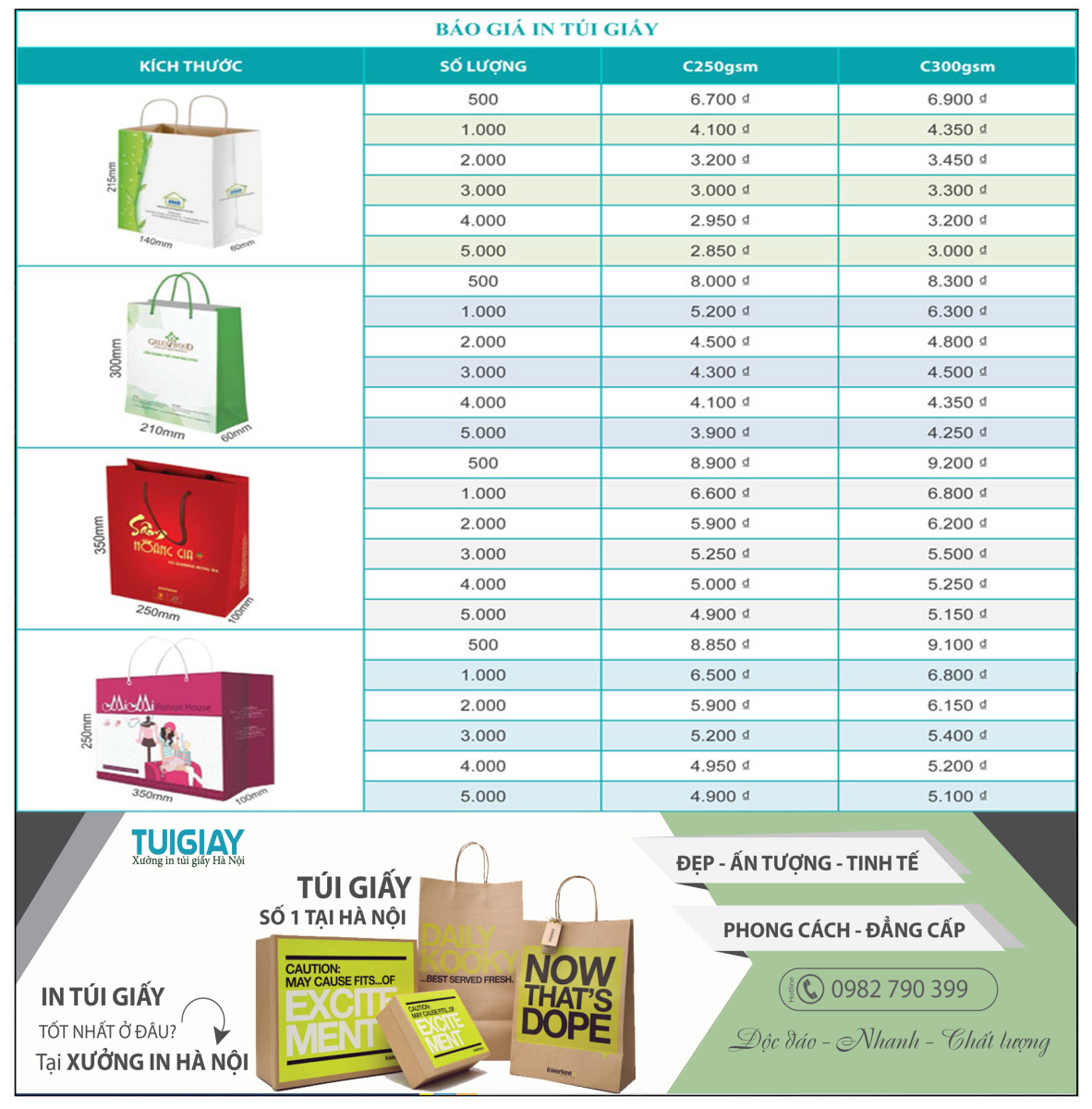 khi đặt in túi giấy. Nếu bạn đang có nhu cầu in túi giấy đẹp và cần 1 giải pháp tối ưu về mặt chi phí thì hãy liên hệ với chúng tôi qua số Hotline. Chúng tôi tin tưởng sẽ đem lại cho bạn sự hài lòng về chất lượng cũng như giá thành của sản phẩm.